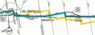 Entering Porter County, the 1928 route overlaps with U.S. 30 for