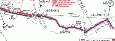 The route of the Lincoln Highway enters Indiana from Ohio, then