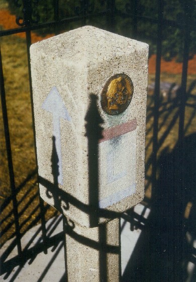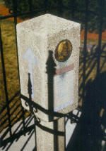 Also on Lake Street is the only concrete memorial post in Indiana that survives at or near its original position. By the count of Russell Rein, Lincoln Highway researcher, there were 150 posts set on the 1928 route, including this remaining one in Funk Park. The original notes of Gael Hoag, the long-time field secretary of the Lincoln Highway Association who planned for the placement of each post, described this location as being in the "triangle at Lake, Columbia, and Perry." The post is not quite in its original position, having been relocated a short distance to its present spot after the city completed a utilities project. Sixty-seven years to the day after it was originally set, the post was rededicated on September 1, 1995, in a delightful ceremony that I had the privilege of attending.