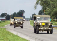 To commemorate the 90th Anniversary of the 1919 Transcontinental Army Convoy, about seventy military vehicles from various eras approached Delphos, Ohio on Wednesday June 17th. The convoy was a mile and a half in length, and the variety of sounds (not just engines, but horns and sirens), made it a treat for both the eyes and the ears. After overnighting in Delphos at Jefferson High School, the convoy continued west to South Bend, where it was featured in a downtown parade that was planned in conjunction with the annual conference of the Lincoln Highway Association. Here are just a few of the vehicles in the patriotic procession.