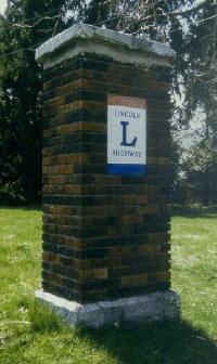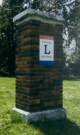 Lincoln Highway at this point. The replica pillar was built on the base of the