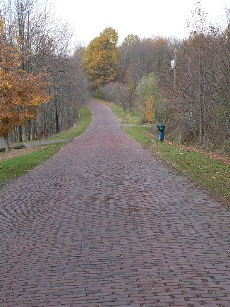 As reported by Ed Balint in a fine story that was published in the October 7 edition of The Canton Repository, Osnaburg Township Trustees and Paris Township Trustees are once again considering the placement of blacktop over two landmark brick roadways in Stark County, Ohio. This would include the entire half-mile brick road remnant known as Cindell Street in Osnaburg Township, and much of the two-mile stretch of alternating brick and blacktop known as Baywood Street in Paris Township. The two roadways were on the main line of the coast-to-coast Lincoln Highway from 1913 to about 1935, but became remnants of the historic route when a new two-lane version of U.S. 30 was carved through eastern Stark County.