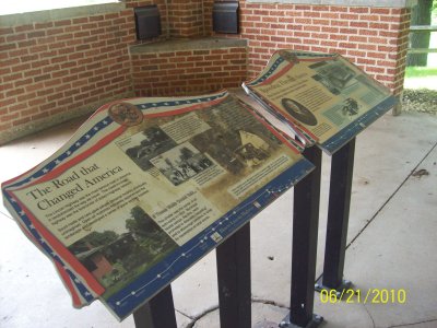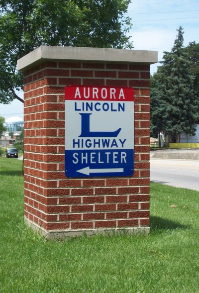 Interpretive signs at a tourist shelter in Aurora, Illinois, typical of many that have been placed across the state. |