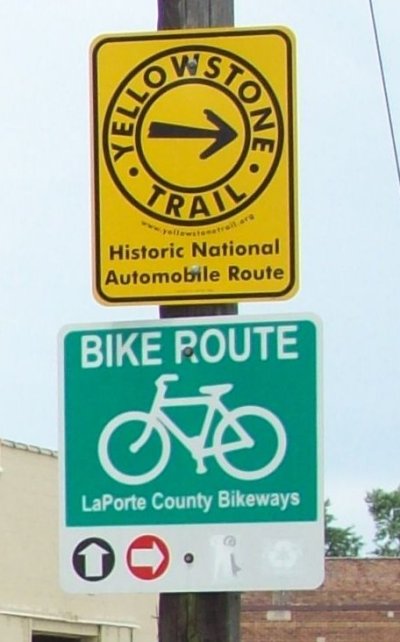 Yellowstone Trail sign in Wanatah, Indiana, the easternmost known sign for this old auto route. |
