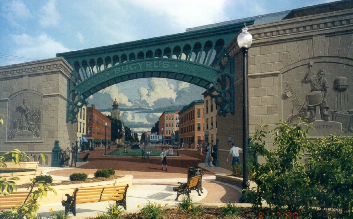 As of this writing, the city of Bucyrus is the only part of this section to have been bypassed with a limited access project of U.S. Route 30. This four-lane segment, with four interchanges, was opened in the early 1970s. However, potential future four-lane alignments that would pass to the south of Crestline are presently being discussed. Except within corporate limits, the 1928 route through Crawford County is officially designated as Lincoln Highway. Within the village of Crestline, the route is marked Main Street, and within the city of Bucyrus, the route is Mansfield Avenue. Near downtown Bucyrus, watch for the traditional red, white, and blue Lincoln Highway signs in the abutment walls of the railroad viaducts. There are three separate viaducts, and the two outside viaducts each have one sign which faces oncoming traffic. Watch for these signs carefully, as they are well-worn, and sometimes obscured by vegetation. |