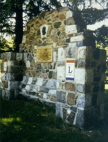 The brick pillar near Bucyrus is at the northwest corner of Stewart Cemetery, at 2.65 miles east of the town square. Interestingly, this monument was moved to its present location in 1920, when the Lincoln Highway between Mansfield and Bucyrus was rerouted from an alignment through Galion to an alignment through Crestline. The original location of this pillar was on what is now Hopley Avenue/State Route 19, just east of Whetstone Street, near the Bucyrus city limits. It was dedicated to E.J. Songer, Crawford County consul, on November 11, 1918. Another monument on what is now State Route 19 was dedicated to F.A. (Frank) Seiberling, president of the Lincoln Highway Association. This monument was one mile east of the original location of the Songer Marker, at a place known locally as the Holmes Curve, but its fate is unknown. The unique stone monuments in Bucyrus are both on the golf course