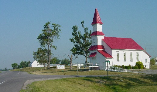 This freshly painted country church at the end of a long tangent on the old Kenton and Kalida State Road was visible for three miles in the morning sunlight.