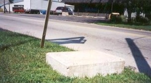 and concrete monument, nearly three feet square and six feet high, was knocked