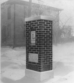 The second column was erected a mile farther west, at the Frank O. Sears farm. It was dedicated to Henry C. Ostermann, and was to be shown to him on his next trip through. This second monument was laid up with yellow mortar instead of white. The tablet on the second monument read: